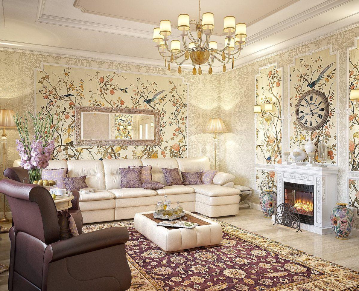 Дизайн обоев с узорами и орнаментами должен соответствовать выбранному стилю оформления мебели и аксессуаров. Если от обстановки в вашей гостиной веет стариной – не задействуйте в отделке обои с современными эффектами.
