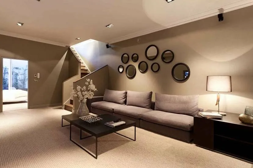 - Установленное в тёмной гостиной, зеркало будет зрительно уменьшать помещение.