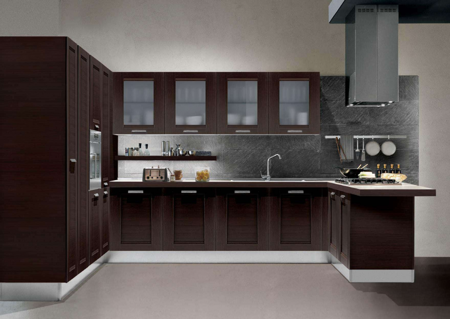 Дизайнеры рекомендуют использовать для современного интерьера кухни цвет венге. Такая колористика будет удачной для кухни, выполненной в стиле модерн