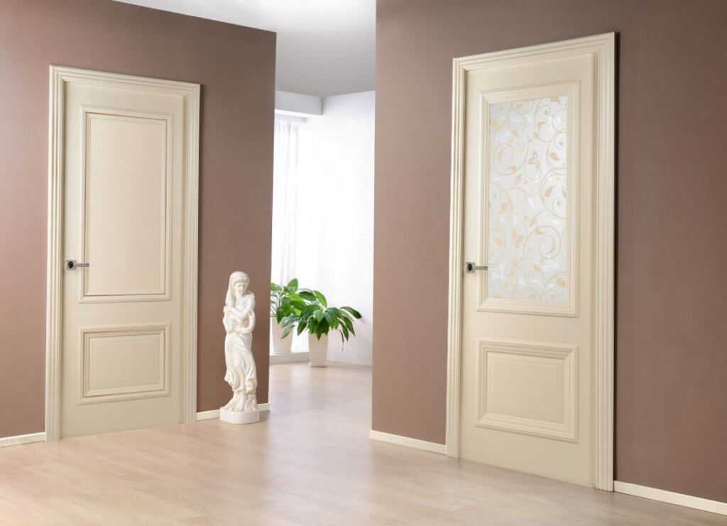 - Бежевый. Привычный многим цвет дверей. Гармонирует со светлым ламинатом. Напольное покрытие может быть с молочным оттенком. Отличный выбор для санузла и ванной.