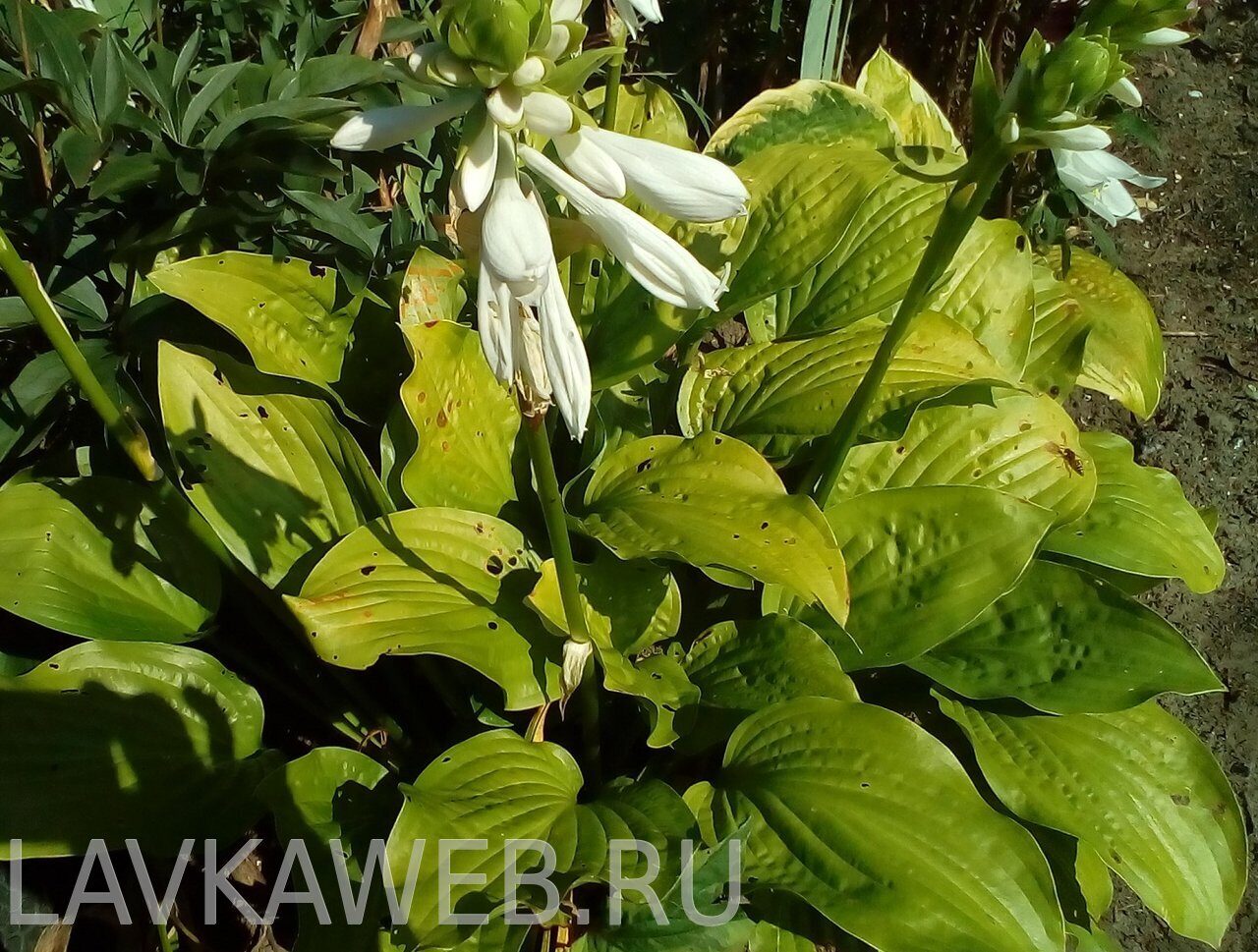 Хоста Роял Стандарт – подорожниковая хоста, цветки крупные, белые, ароматные с запахом жасмина.
