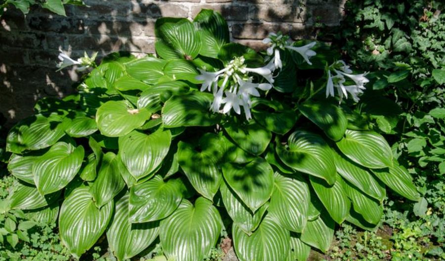 У хосты подорожниковой (Hosta plantaginea) тоже достаточно крупные, до 30 см в длину и до 15 см в ширину, листья с сердцевидным основанием и острым кончиком. Листовая пластина ярко-зеленая, блестящая. Цветки крупные, до 10 см длиной, белые, на высоком, до 60 см цветоносе. Цветет хоста подорожниковая в конце августа в течение двух недель.