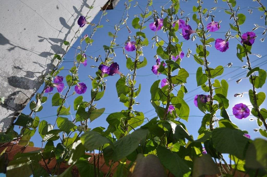Быстрорастущий вьюнок для тех, кто хочет затенить балкон. Чтобы лианы вились в нужном направлении понадобится шпалера или веревка.