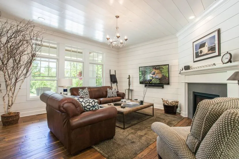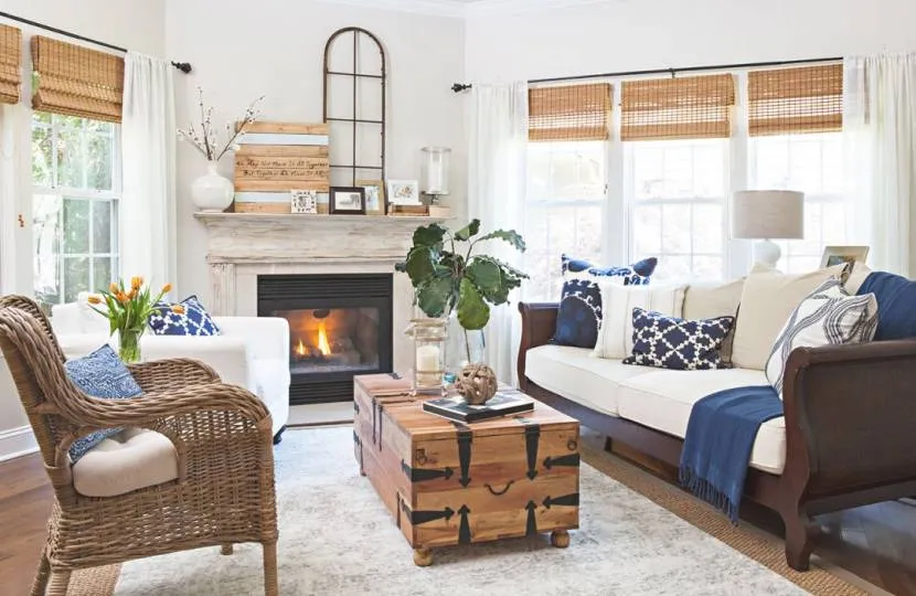 Угловая расстановка дивановИсточник whiteoakfarmhouse.com