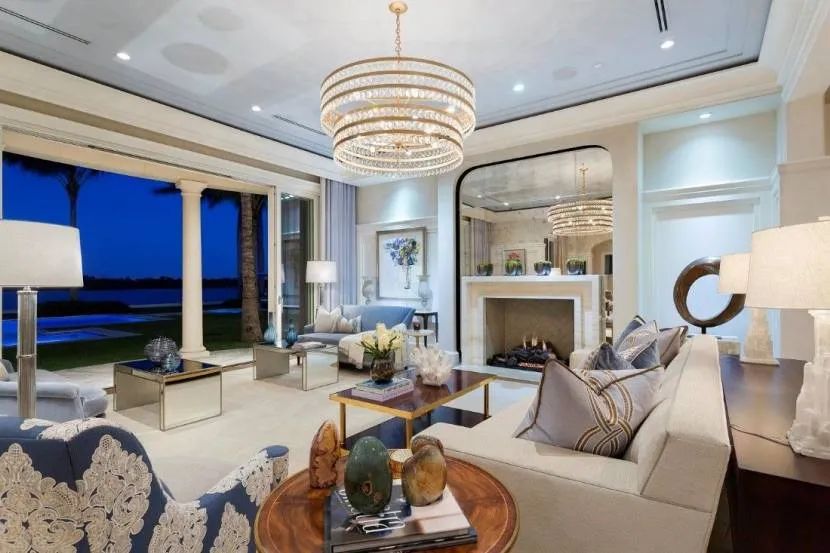 Композиционный центр оформляют в любом удобном месте: как около стены (например, у камина), так и в центре комнаты.