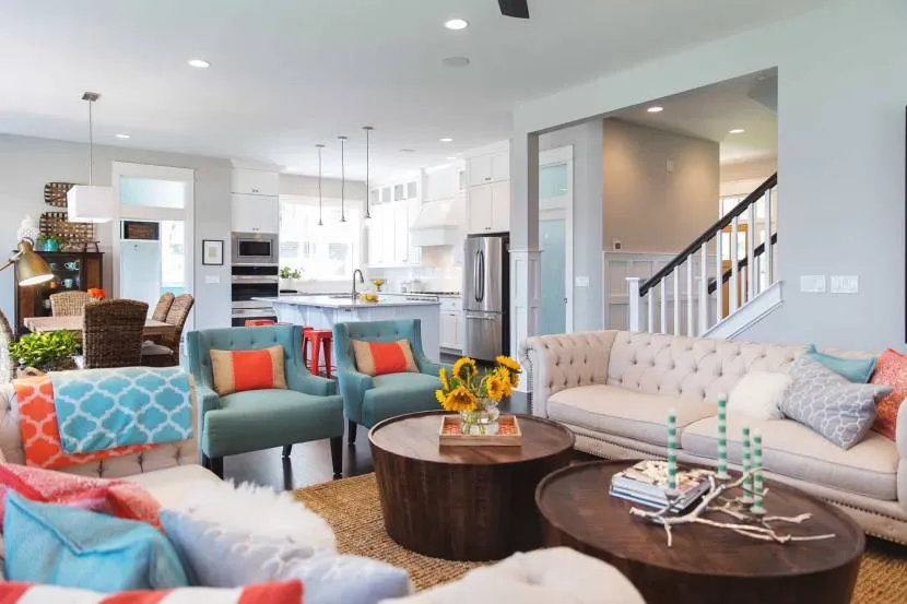 Цветовые акценты в оформлении зоны отдыхаИсточник gotohomerepair.com