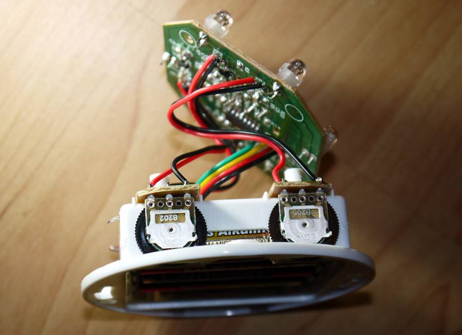 ![]() | 1. Светофильтующая пластина. 2. Транзистор. 3. Резистор. 4. Контакт питания на +5В. 5. Корпус. 6. Кристалл пироэлектрика. 7. Общий выход. 8. Сигнальный выход. |