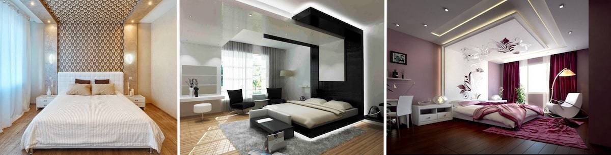 Потолки могут иметь квадратную, прямоугольную, округлую, многоугольную форму или вообще, быть представлены как сложно фигурная поверхность, поэтому традиционное горизонтальное оформление потолка параллельно полу, все чаще уступает место наклонным и многоступенчатым конструкциям, которые, надо отдать и должное, воспринимаются намного интересней. В разных ипостасях обыгрываются и стыки потолка со стенами. Переход часто делают закругленным и оформляют различными декоративными накладками.