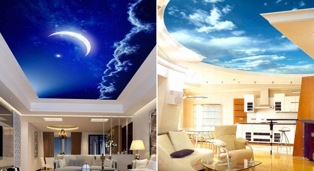 Продолжают оставаться актуальными разновидности натяжных потолков 2021, оформленных при помощи высококачественной фотопечати.