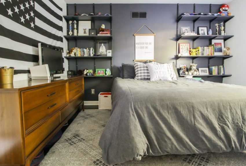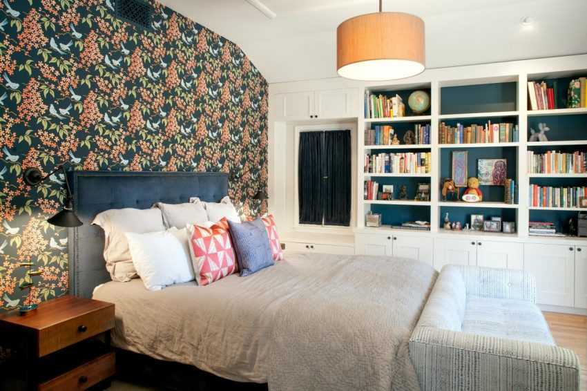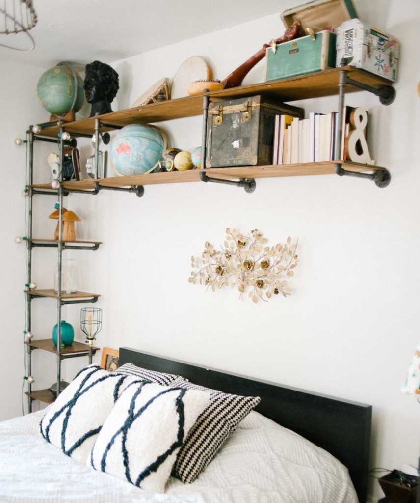 Кроме того, что полки – это практично, это еще и отличная деталь интерьера, которая позволяет поставить книги, картины, раритетные вещи и предметы обихода. Декор современной спальни обязательно включает в себя этот элемент.