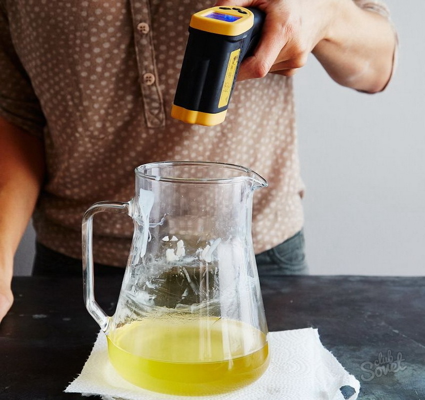 Затем перелейте жидкость в мерный стакан. Так вы узнаете точную массу для приготовления свечи.