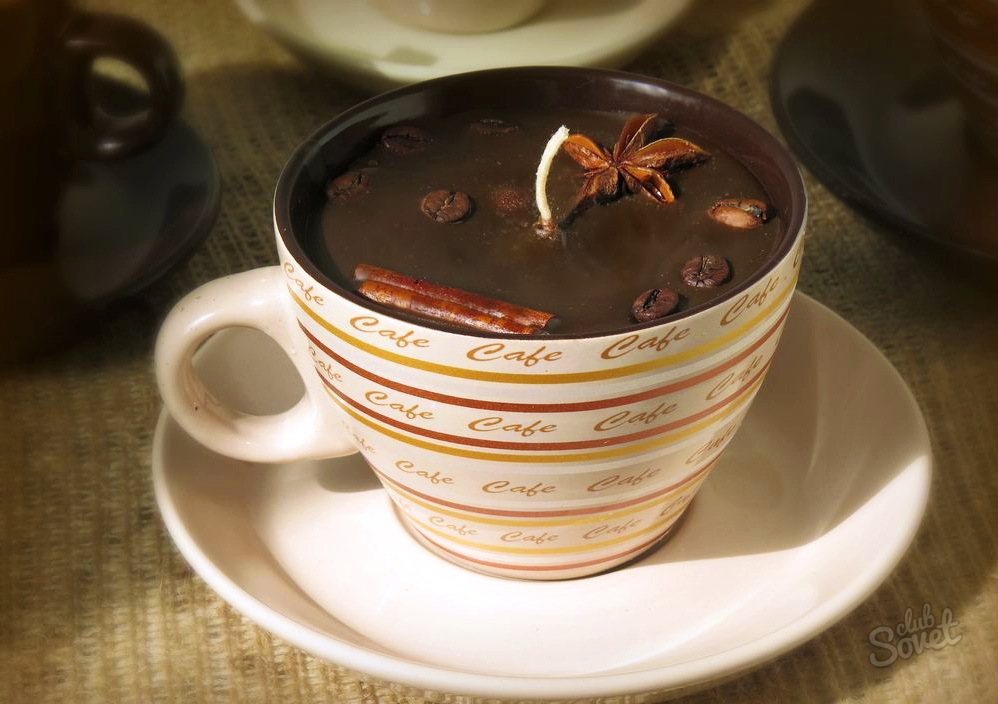 вставив в большую форму готовую свечу меньшего размера, промежуток между ними заполните зернами кофе.