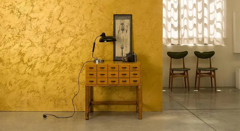 Данная разновидность получила широкое распространение при проведении отделочных работ внутри помещения. В засохшем виде она имитирует рисунок оникса или мрамора. На первый взгляд ее трудно отличить от настоящих камней. Поверхность, обработанная венецианской штукатуркой, может быть глянцевой или матовой. При добавлении к ней различных колеров можно добиться эффекта имитации драгоценных камней. Лучше всего для этого подходят оттенки под перламутр, серебро и платину.