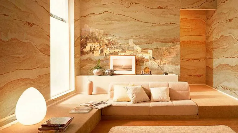 Для оформления стен (а иногда и пола) жилых комнат. Наилучшим способом материал проявляет себя в создании акцентов в интерьерах классического направления, в стиле минимализма, ар-деко, кантри, арабского.