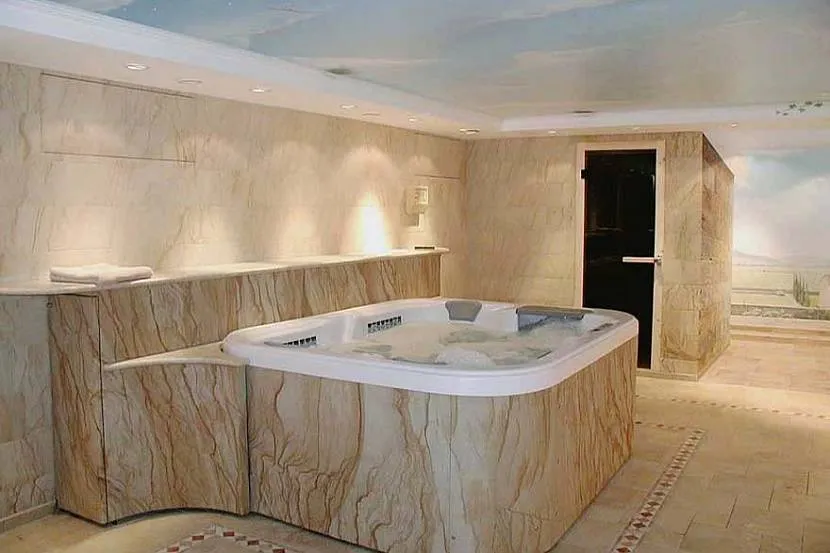 Для отделки стен в помещениях с повышенной влажностью: ванны, бассейна. Гибкий камень в ванной комнате в виде песчаника создаст в помещении теплую и уютную атмосферу. Роскошный вид ванной или бассейну придаст отделка в виде малахитовой поверхности.