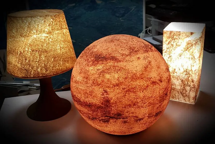 И рулон, и плитка обладают светопроницаемостью, сила которой зависит от толщины декоративного слоя. Это качество позволяет изготавливать абажуры для оригинальных светильников, излучающих приятный глазу мягкий свет.
