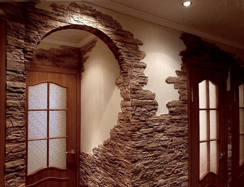 Отделка камнем дверного проёма – популярный, современный вариант для дома или квартиры