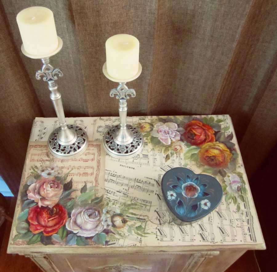 Это нужно знать: Декупаж мебели своими руками лучше делать, используя материалы, которые можно мыть. Такой декор прослужит вам долго, и его не придется заменять, если вы случайно прольете на него воду. Виниловые материалы – это оптимальный вариант.
