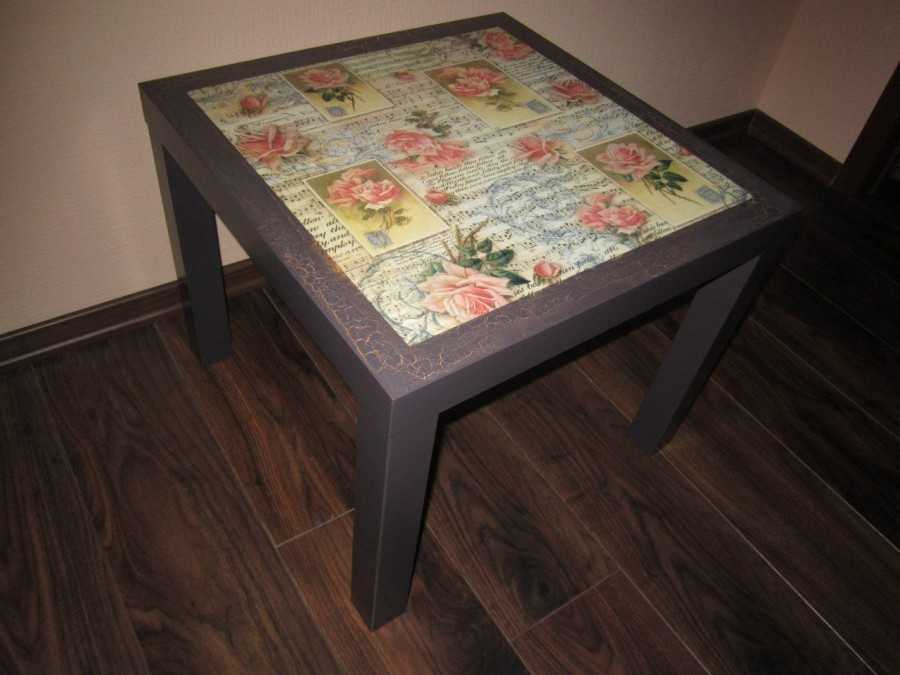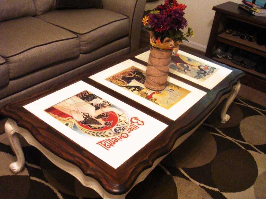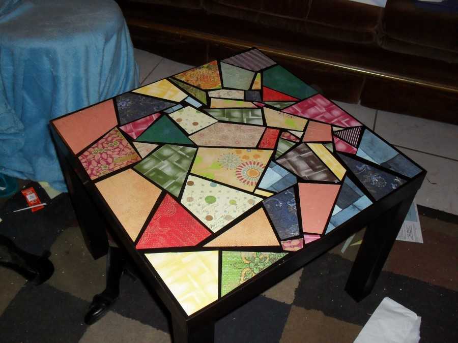 Удобно, что клеящий состав при этом использовать не придется. Дизайн журнального столика можно поменять, когда это понадобится.