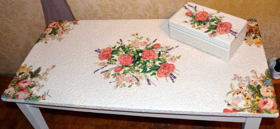 Декупаж мебели – вообще отдельная тема для разговора. Журнальные и кофейные столики, садовые скамейки, стулья, буфеты, комоды…