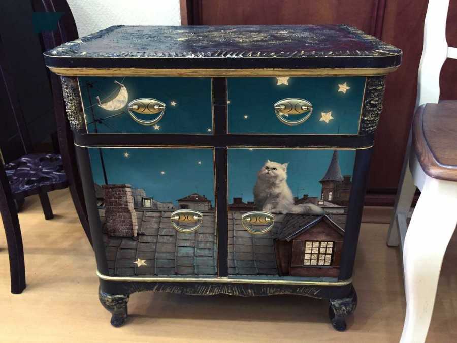 Стильно. Главной причиной замены мебели считается ее несоответствие с новым стилем. Так, например, если в комнате выполнено декорирование в направлении кантри или прованс, то даже новый приобретенный шкаф придется «подгонять» под общий вид помещения. Поэтому, благодаря ручной стилистике, находящийся в эксплуатации шкаф, ничем не уступит дорогой новинке из магазина.