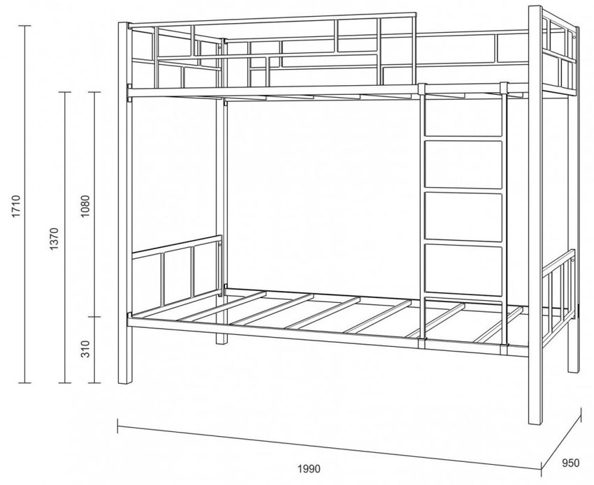 Для традиционной модели на основании представленного чертежа двухъярусной кровати из дерева необходимо изготовить следующие детали: