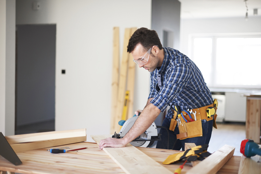 - Нарисуйте чертеж и раскройте ДСП. Используйте пилу, чтобы разрезать ДСП на нужные элементы. боковые, верхние и нижние панели кровати, элементы для ящиков или полок.