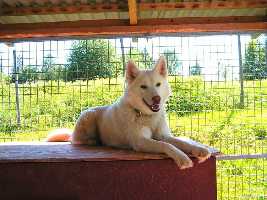 Позволяет площадь вольера – сделайте собаке летний настил, так как в будке может быть жарко.