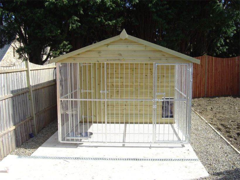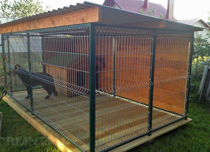 Отдельно стоит отметить, что вольер предусматривает наличие спального места для собаки, которое защищено от ветра, дождя и холода. Для этого можно использовать будку, но если она является частью вольера, то строить ее не нужно.