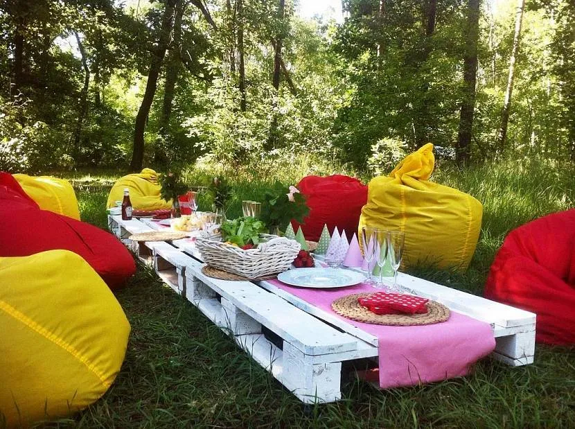 Мягкая мебель для сада – кресло-мешки, столик, подушкиИсточник partytime78.ru