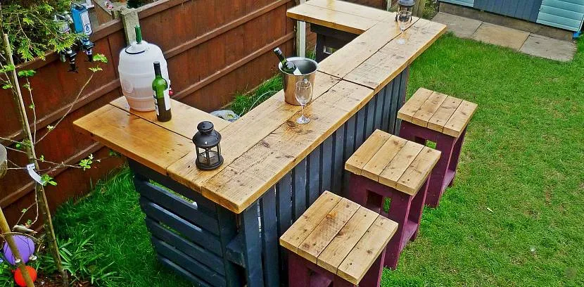 Барная стойка и табуреты из поддоновИсточник bergge.com