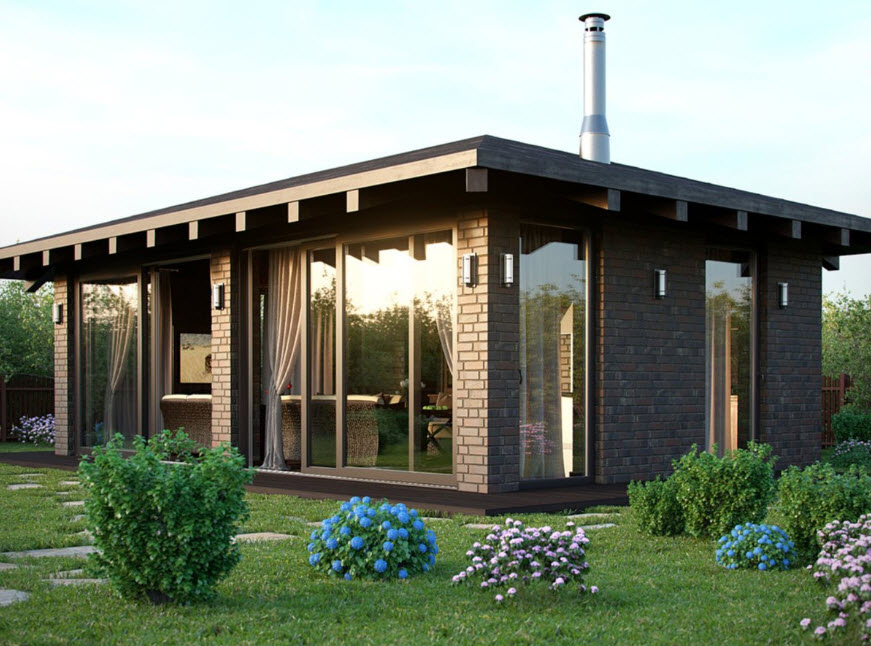 Кирпичи или камень можно использовать для построения как открытых, так и закрытых беседок. В первом случае достаточно будет построить невысокие перегородки и столбы для навеса, оставив между ними свободное пространство. Во втором – возвести полноценные стены с оконными проемами.