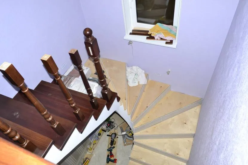 Каркас оставляют открытым, если нужно визуально сделать пространство более легким, или, например, лестничный марш перекрывает окно. В этом случае основание нуждается в тщательной подготовке: его аккуратно зачищают и покрывают лаком или краской. Отделку марша выполняют снизу вверх, в следующем порядке: