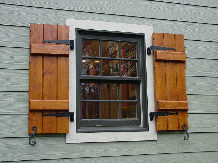 - Стильность. Изготовленные из дерева ставни будут смотреться очень оригинально и изысканно. Особенно если использовать определенные породы дерева.