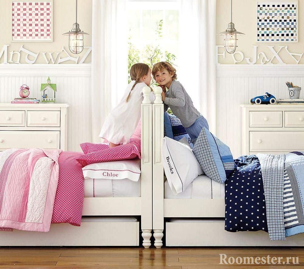 Тонкости обустройства спальных места в маленькой детской для разнополых детей