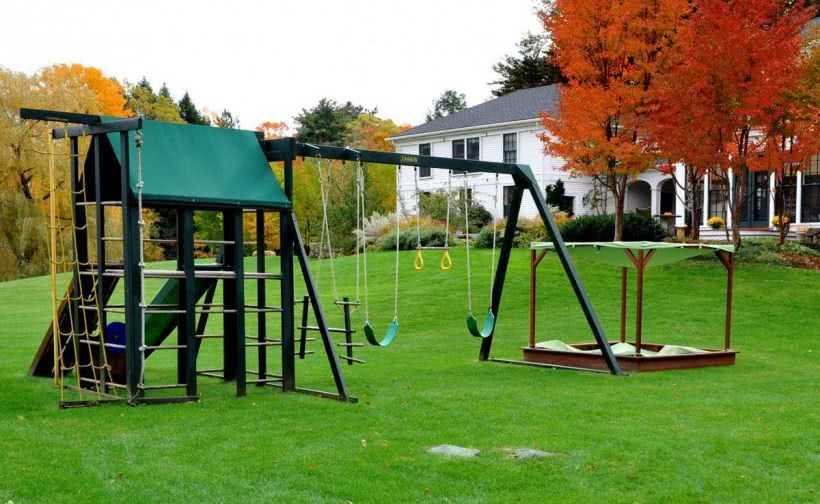 И не забудьте о мягком безопасном покрытии для земли. Грунт травмоопасен сама по себе, а размокнув после дождя, становится еще опаснее. Можно покрыть его, например, газонной травой. К тому же, если площадка является металлической, она обязательно должна бетонироваться.