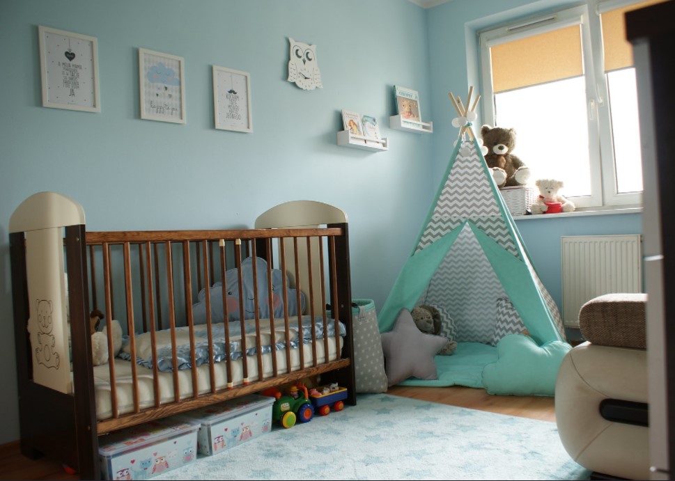 Шторы и текстиль — универсальный выбор для того, чтобы комнаты стала уютнее. Будьте аккуратны, обустраивая комнату для грудного ребенка. Большое количество ткани скапливает пыль, а это может негативно сказаться на здоровье. Кроватку малыша достаточно украсить бортиками, можно повесить балдахин для большего уюта , а окна закрыть шторами из плотных натуральных тканей.