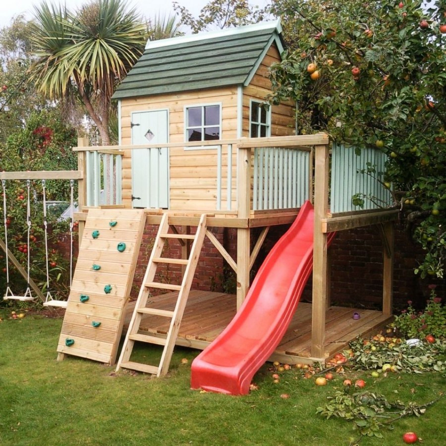 Дети без ума от домиков, сооруженных на ветках деревьев. Если такой прямой возможности нет, то можно его просто поднять на определенную высоту. Кстати, в таком варианте исполнения домик может защитить поленцу дров.