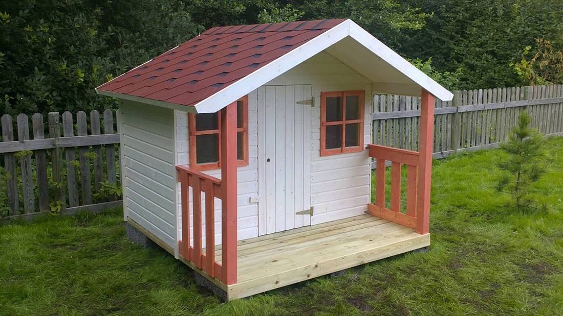 Осталось уложить кровельное покрытие и красиво оформить веранду. Такой домик точно станет любимым местом детского отдыха!