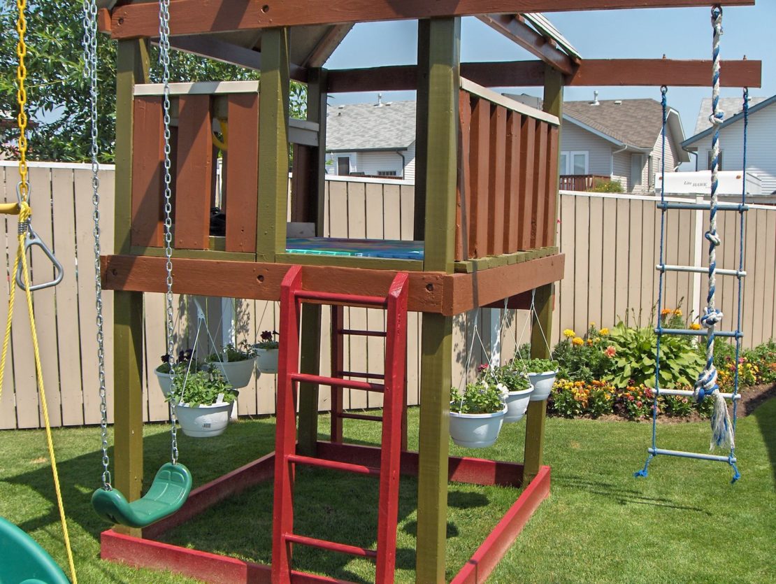 Важно соорудить игровую часть так, чтобы она просматривалась из дома, сада и огорода. Так удобнее присматривать за детьми.