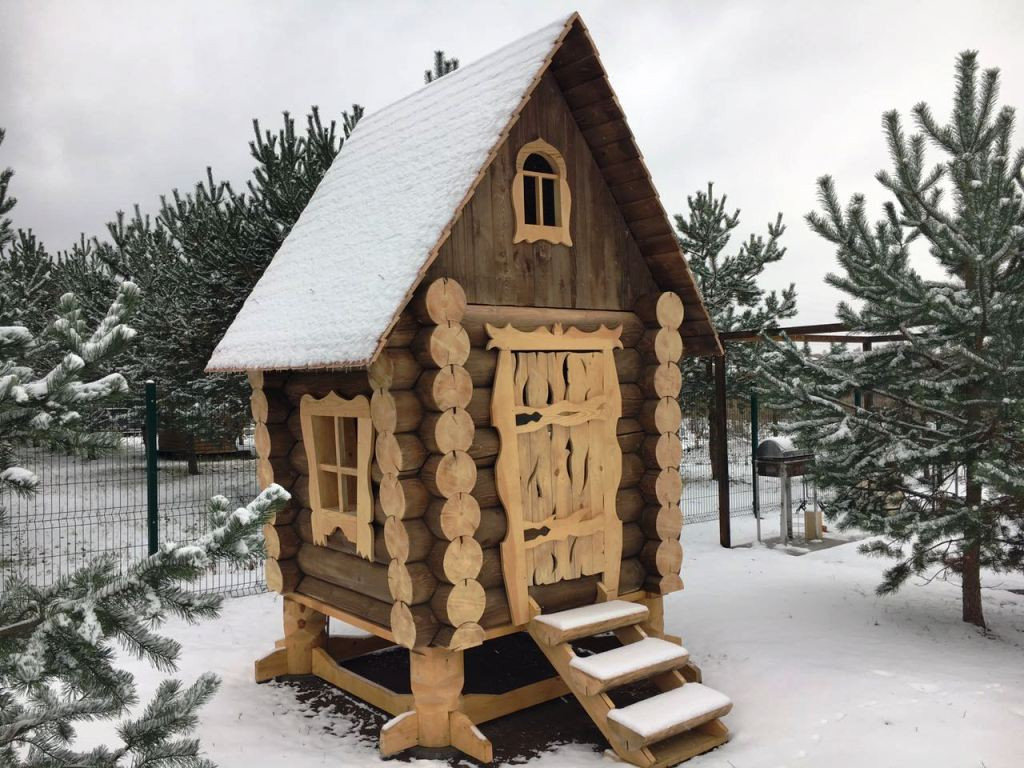 - Домик на курьих ножках – отличается от других тем, что ставится на опоры, а не на землю. Идеальное решение для девочек;
