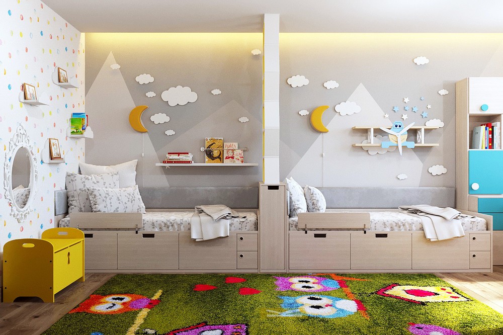 Важно также обращать внимание на то, как детки ладят между собой. Если у них разные интересы или они не могут найти общий язык между собой, рекомендуется сделать зонирование, разделив пространство перегородкой или высокой мебелью