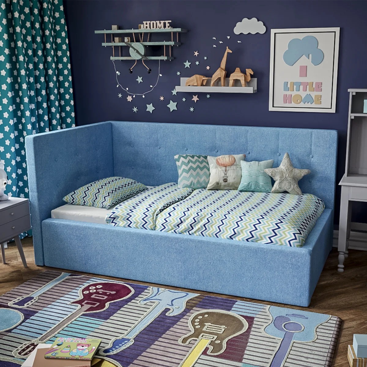 Этот элемент в детской станет дополнительным местом для отдыха. На ней можно удобно расположиться, чтобы почитать книгу.