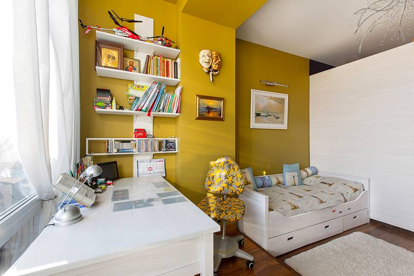 Для этого возраста важно оборудовать не только удобное спальное место, но и зону для занятий рисованием или лепкой. Однако не следует перегружать помещение большим количеством мебели