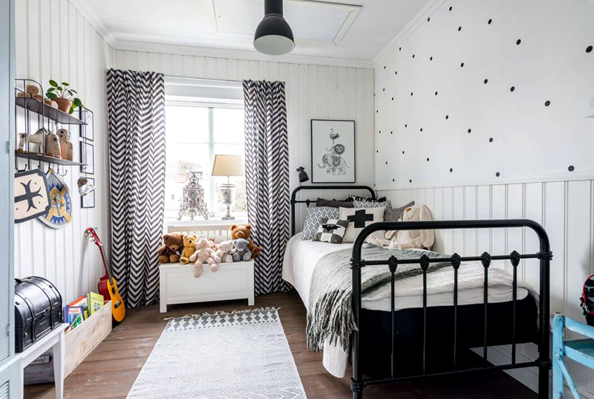 В комнате должно быть достаточно свободного пространства для активных игр ребенка. Для двоих детей наиболее востребованным вариантом являются двухъярусные кровати с ящиками и полками, предназначенными для хранения игрушек и вещей. Такие конструкции занимают минимум пространства, но характеризуются большой вместительностью и функциональностью.