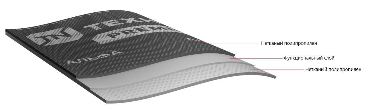 Слои в диффузионной мембране чаще всего выполняются с использованием такого материала как нетканый пропилен, при этом средний слой делается устойчивым к натяжению, а внешние слои характеризуются как защита от повреждений.