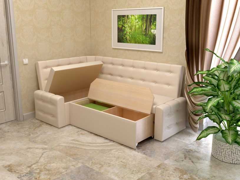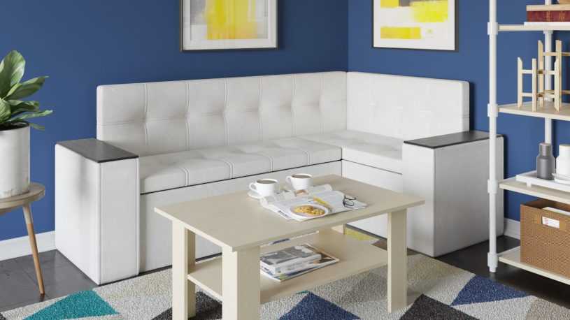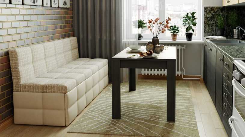 Мини-диван на кухню со спальным местом очень удобен. Уютный предмет сочетается с обеденной зоной. Обеспечит комфорт за столом и послужит зоной для сна в совмещенной кухне.