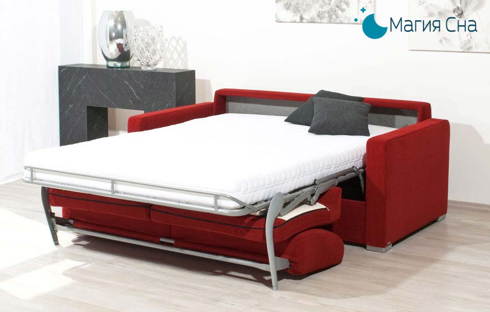 За счет движения спинки на себя, сиденье отодвигается вперед и спинка ложится на его место. Данная модель сабля, оснащена потайными ящиками для хранения постельного белья.