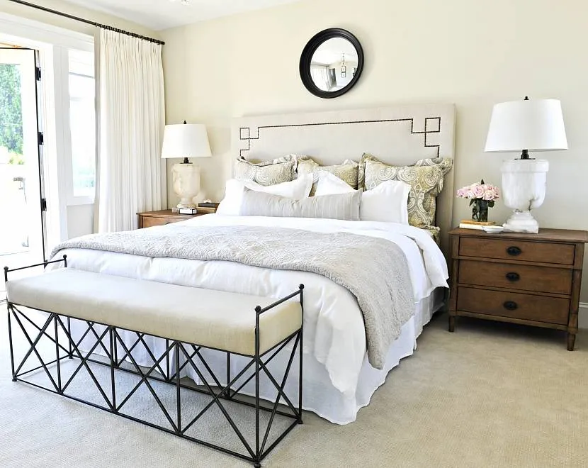 Стильная кушетка возле кровати вносит в интерьер аристократические ноткиИсточник interiorsroom.ru