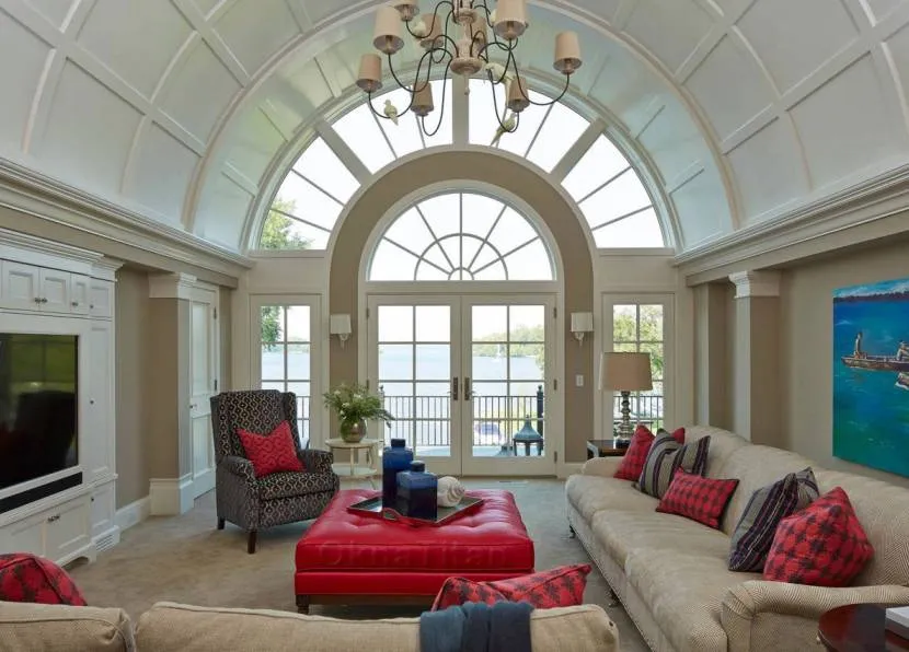 Такие конструкции обычно имеют ровную поверхность для удобства использования и износостойкую ткань обивки для продления срока службы. Но гармонично смотрится такая конструкция только в больших помещениях.